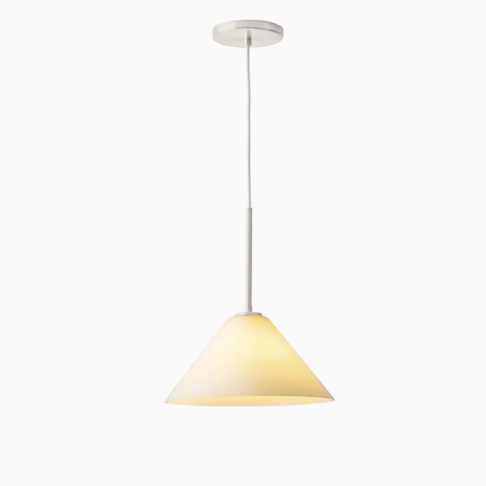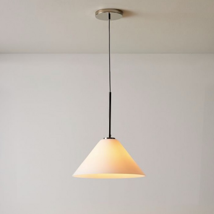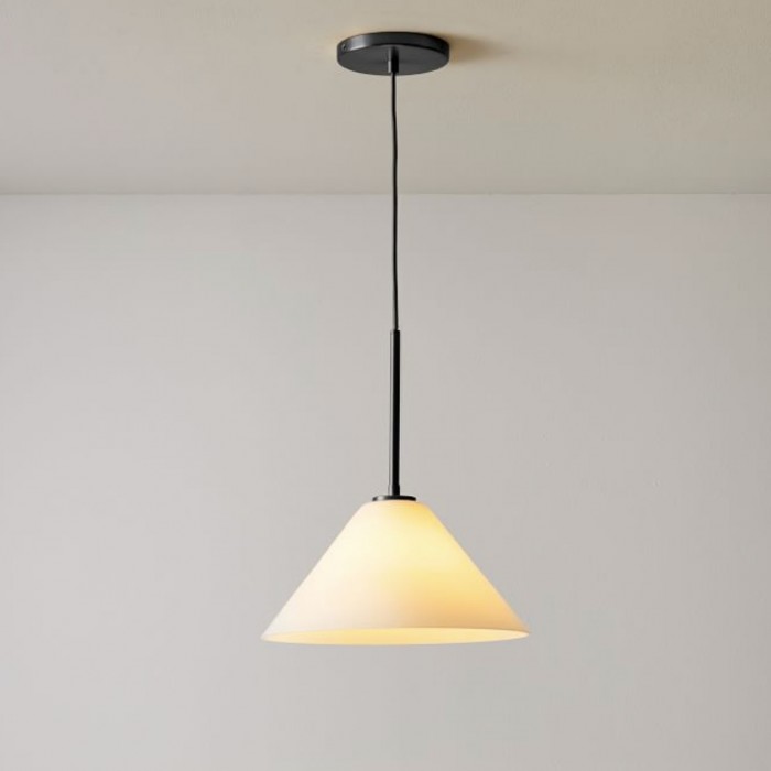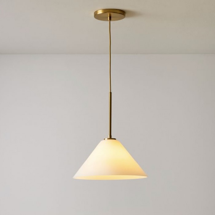 Łącząc rzeźbiarski design z codzienną funkcjonalnością, ta lampa wisząca w kształcie stożka ma szklany klosz, który delikatnie rozprasza światło. Dzięki regulowanemu zawieszeniu i szerokiej gamie wykończeń idealnie nadaje się do jadalni, kuchni lub miejsc pracy.
